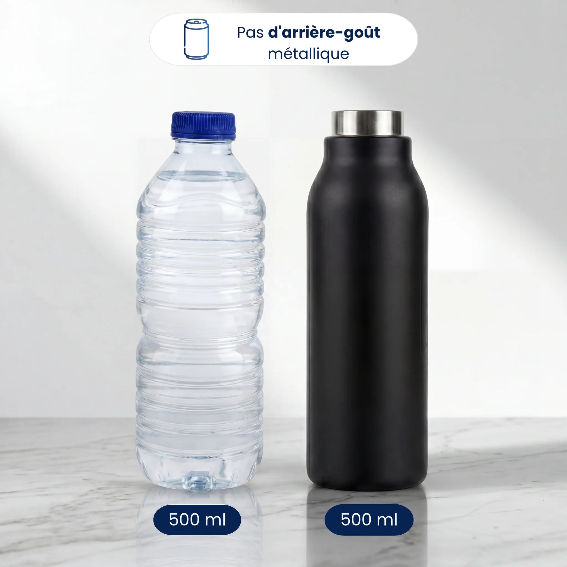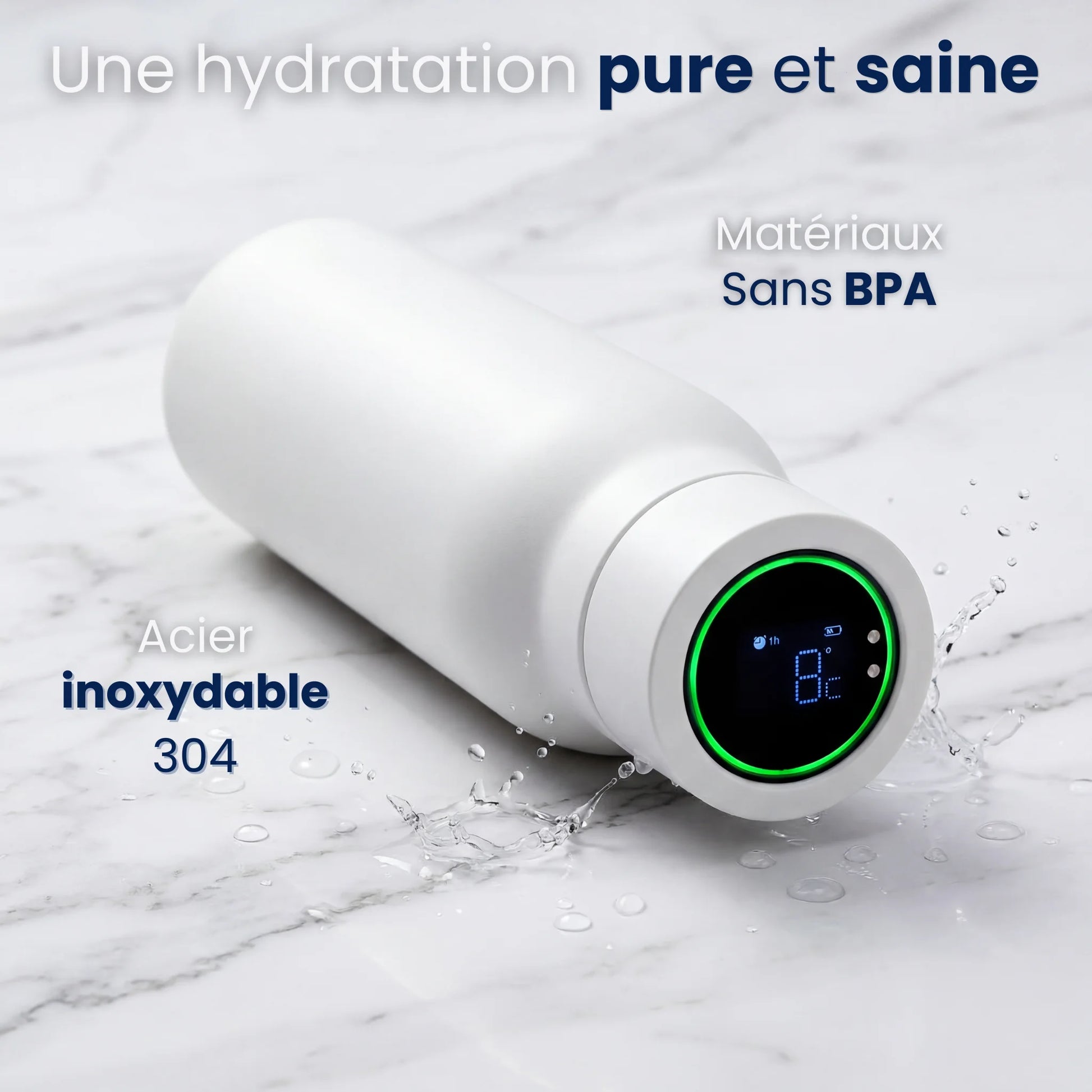 Un alliage premium, ultra-résistant aux chocs et garantissant une eau sans goût métallique